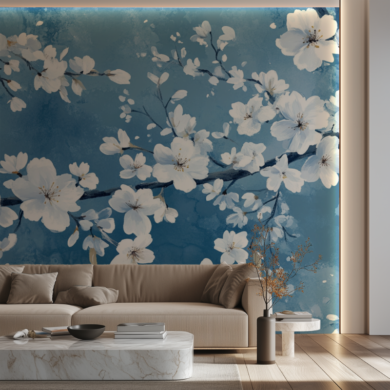 Comment le Papier Peint Fleurs Bleues De Cerisier Japonais améliore-t-il votre espace ?