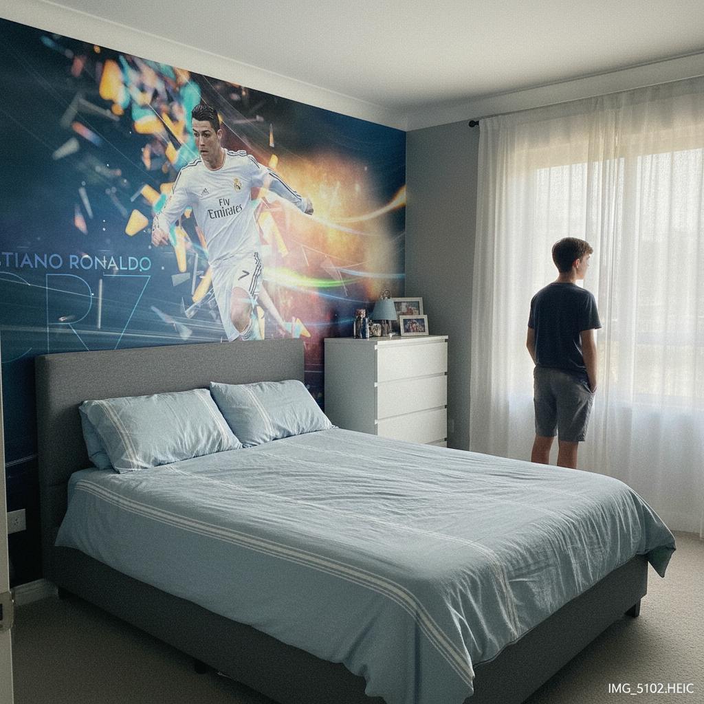 Installer le papier peint Cristiano Ronaldo dans une chambre d'enfant ou un espace de loisirs transforme instantanément l'atmosphère. Ce motif dynamique ajoute une touche de sophistication et une énergie vive qui stimule et inspire.