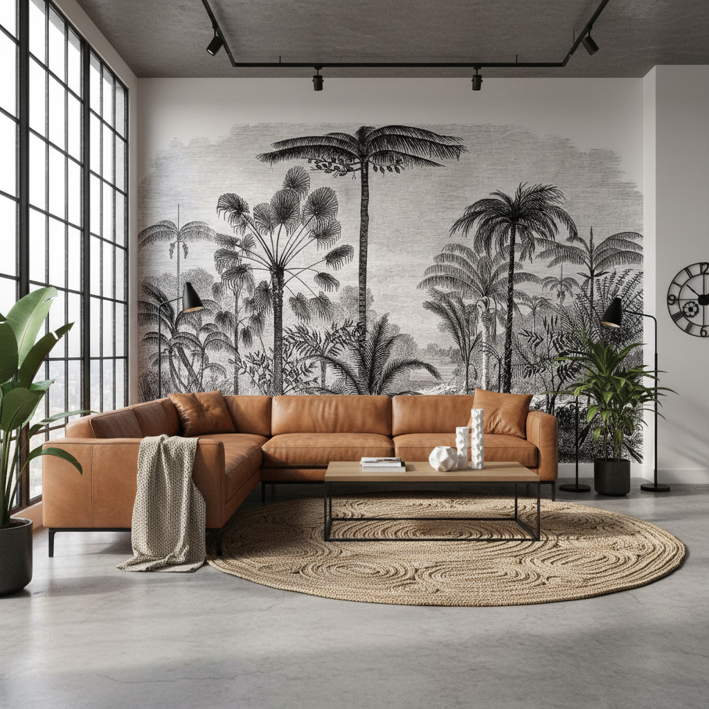 Choisissez ce joli papier peint tropical en noir et blanc pour décorer les murs de votre salon ou de votre chambre. Cette magnifique tapisserie tropicale en noir et blanc apportera une touche de modernité et un style atypique.
