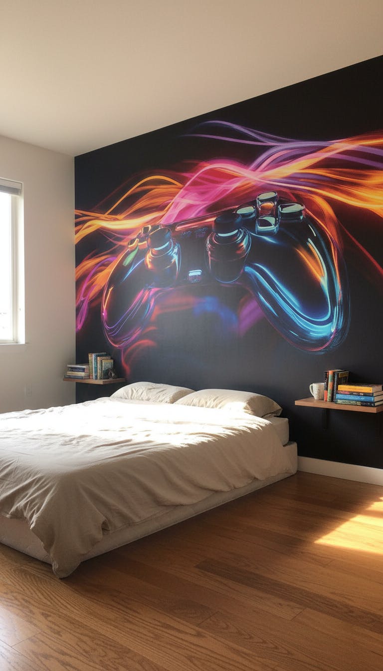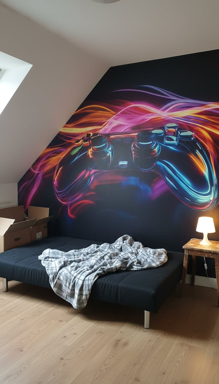 Le Papier Peint Explosion De Jeux Néon est une véritable œuvre d'art murale pour ceux qui souhaitent transformer leur espace en un temple moderne du gaming. Avec ses couleurs éclatantes et son design unique, ce papier peint fait forte impression. Idéal pour une chambre d'adolescent ou une salle de jeux, il offre une toile de fond parfaite pour les aventuriers digitaux.