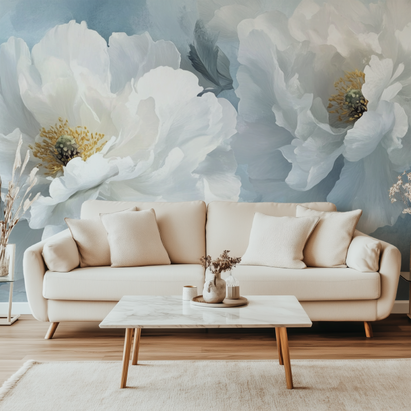 Pourquoi le Papier Peint Fleur Blanche Sur Fond Bleu Lavande est un choix parfait ?