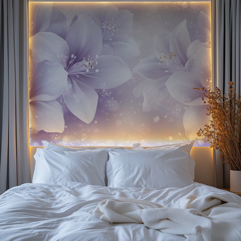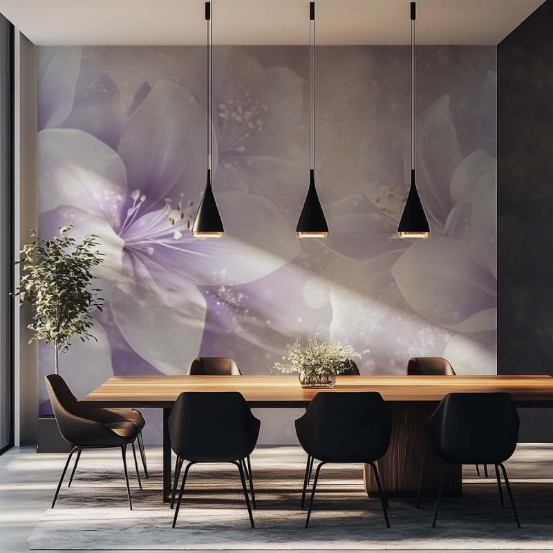 Comment le Papier Peint Fleur Blanche Sur Fond Lavande transforme-t-il votre espace ?
