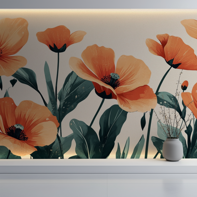 Les couleurs chaudes des fleurs stimulent l'énergie et peuvent influencer positivement l'humeur des habitants. Parfait pour un salon ou une chambre, ce papier peint crée une ambiance accueillante et chaleureuse.